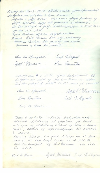 Torsdag den 23-2-1978 afholdtes ordinær generalforsamling bestyrelsen var til stede ÷ Ejner Andersen